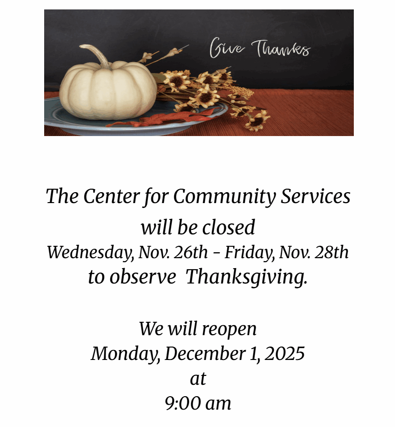 The Center for Community Services strives to ensure that all families in our community have access to the tools to be fully self-sufficient.